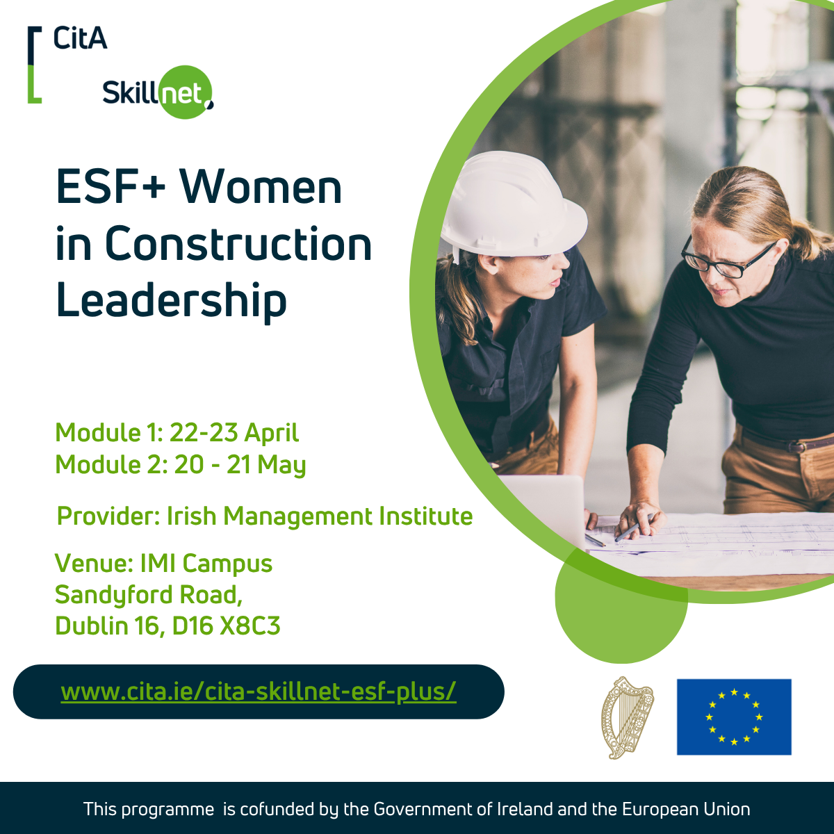 CitA Skillnet is delighted to be cofunded by the Government of Ireland, the European Union,  and network companies, allowing it to provide funding on selected courses and dates within CitA Skillnet’s training offering. CitA Skillnet will focus on skills gap in the construction industry in 2026. CitA Skillnet will be aiming to deliver courses to assist the advancement of technology in construction while continually upskilling with the technology available to control quality and costs, cashflow while still building safely.